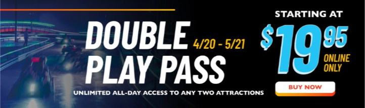 The Double Play Pass lets guests dive into their favorite attractions and enjoy them all day long—whether that’s racing go-karts, enjoying backlight mini-golf, or jumping back into laser tag again and again. It’s all about choosing your favorites and going all in, all day.